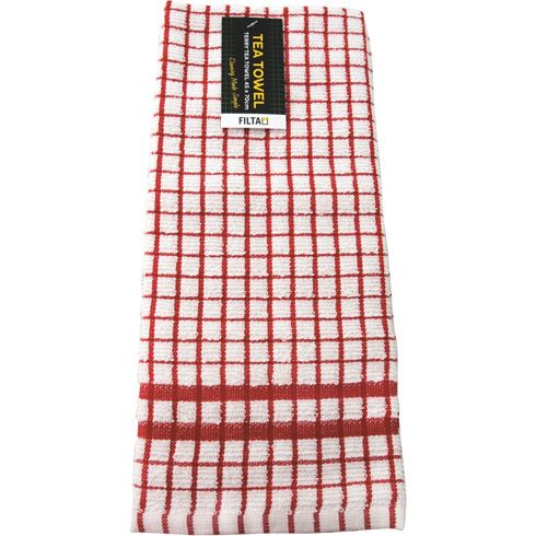 This Filta blended cotton tea towel is great value for your home. These will make washing up and wiping dishes a breeze. They are hard wearing and quick to absorb any water, perfect for drying your dishes or spills in the kitchen.