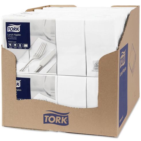 Tork's edge-embossed lunch napkins are Ideal in environments where light meals or snacks are served.