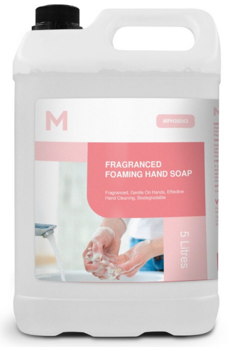 Fragranced foaming hand soap produces a soft and creamy concentrated lather for fast and effective cleaning. Skin conditioning formulation keeps hands soft and supple while removing stubborn dirt and grime. Available in 5L bottles