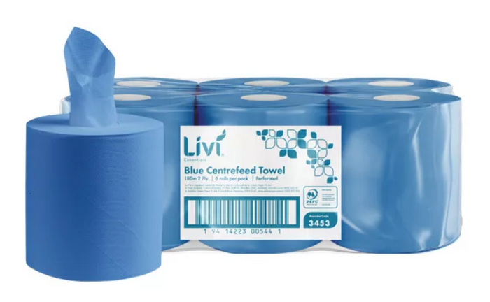 - Livi 2ply Centrefeed Paper Towels Blue Ctn/6 (3453)