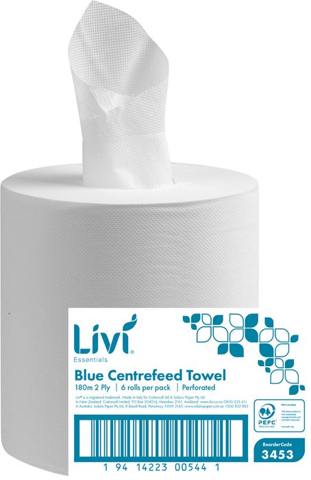 - Livi 2ply Centrefeed Paper Towels Perforated 180m Roll Ctn/6 (3456)