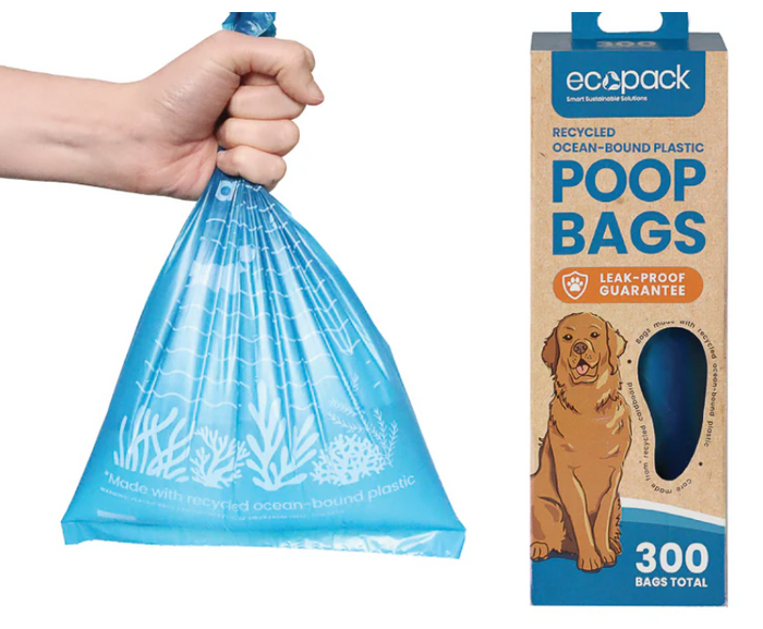 Ecopack Recycled Plastic Dog Poop Bags – 300 ecofriendly extrastrong unscented bags in a handy dispenser box. Made from oceanbound recycled plastic they’re perfect for pantry storage or outdoor waste stations. Designed to fit most standard outdoor dispensers found in public parks for effortless cleanup.