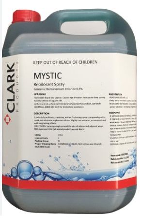 Perfumed sanitising spray for masking and eliminating unpleasant odours. Leaves the air fragrant and germ free.
