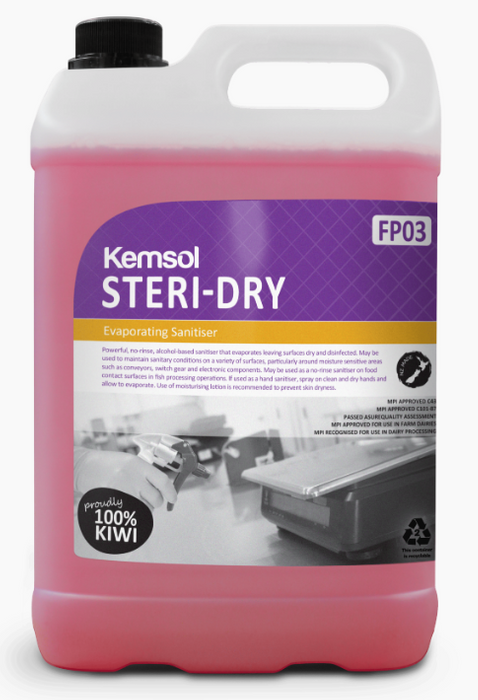 Sanitiser that evaporates to leave surfaces dry and sterile.