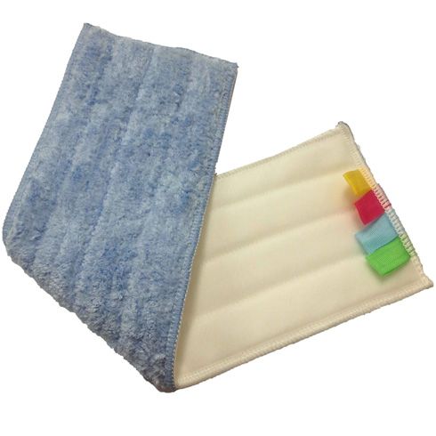 The microfibre flat mop refill pad is suitable for wet or dry use. With coloured tabs these can be cut off leaving one colour to help prevent cross-contamination by using designated cleaning equipment in their designated area.