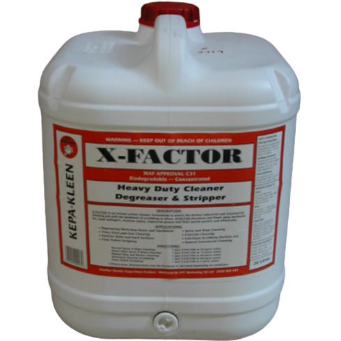 New Zealand made, x-factor heavy duty degreaser, cleaner and stripper.