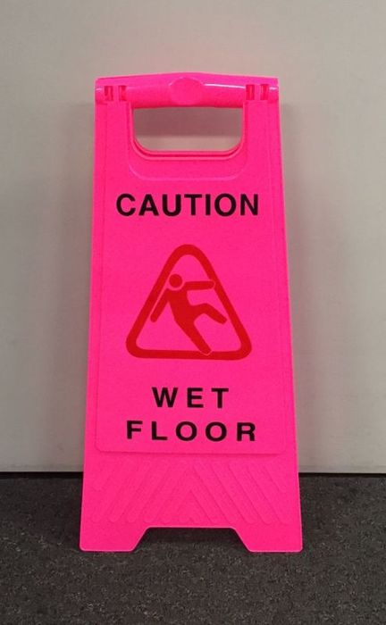Highly visible sign to prevent customers, staff and anyone else of hazardous conditions underfoot.