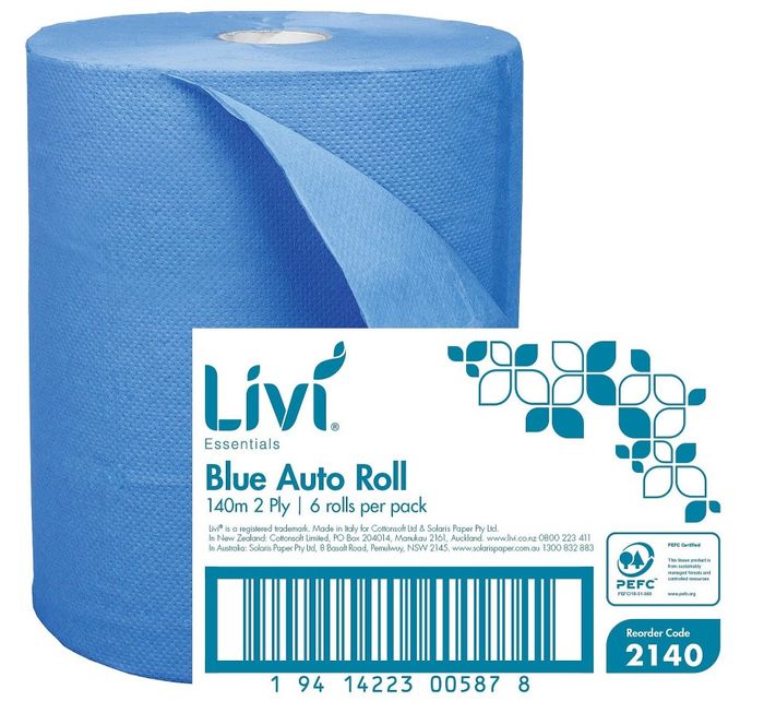 - Livi Essentials 2ply Auto-Cut Paper Towel Rolls Blue Ctn/6 (2140)