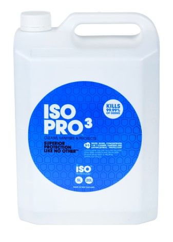 Unlock the power of ISO Pro3 a waterbased 3in1 cleaner sanitiser and antimicrobial protectant tailored for everyday use. Ideal for both domestic and commercial settings apply it to both hard and soft surfaces via spray bottle or mopping. With its revolutionary formulation ISO Pro3 boasts a remarkable ability to eliminate 99.99% of germs bacteria mould mildew odours and viruses. MPI approved C38.