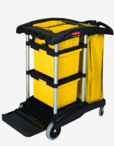 The High-Capacity Janitorial Cleaning Cart offers 40% more storage space than traditional carts minimises trips for additional supplies and maximises staff productivity. Mop bucket platform with securing grooves keeps WaveBrake® or microfiber charging buckets securely attached to the cart. Water and chemical resistant finish provides easy maintenance and long-lasting good looks. Durable 20.3cm ball-bearing wheels and 10.2cm casters provide maximum manoeuvrability. Interchangeable handles and a removable platform allow users to easily expand or reduce the footprint of the cart to meet specific cleaning and storage needs.