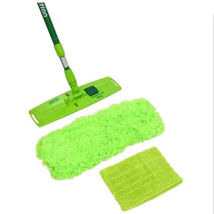 SUPER SWISH XTRA MOP W/- HDL COMPLETE (4) SABCO Ideal for timber, vinyl and tile floors. Cleans the toughest dirt and grime.leaves a streak free sparkling clean. Both a Wet pad and Dry pad included, no need for chemicals.