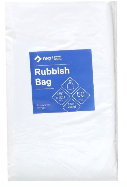 - NXP Rubbish Bag 80L 920x650 40mu White Pk/50
