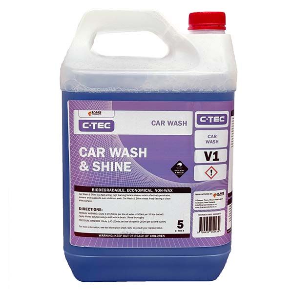 A bio-degradable non-wax vehicle detergent that leaves car exteriors shiny and clean