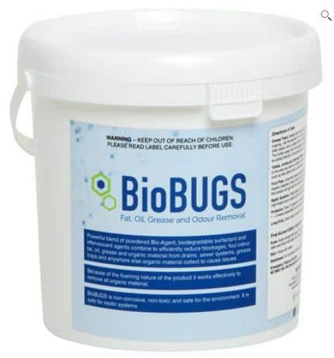 Bio-BUGS is a powerful blend of powdered bio-agent, biodegradable surfactant and effervescent agents combining to efficiently reduce blockages, odour, fat, oil, grease (FOG) and organic materials from drains, sewer systems, grease traps and anywhere else organic material collects to cause issues.