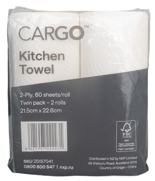 - CARGO Kitchen Towel White Twin Pack CTN/9 pkts