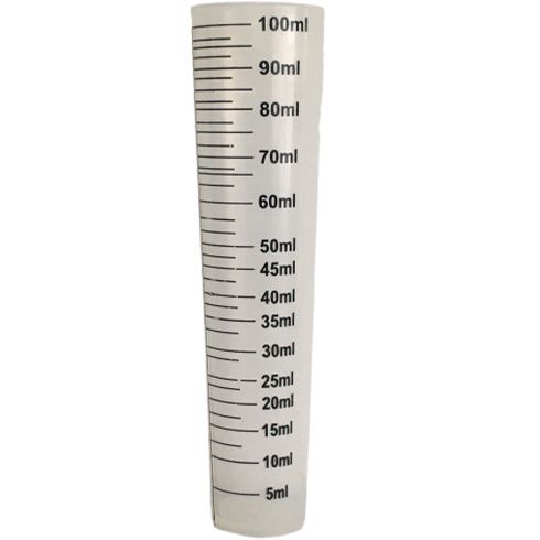 A 100ml measuring cylinder with 5ml intervals.