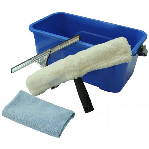 It features a Tbar washer a squeegee a window sleeve a microfibre cleaning cloth and a 12 litre bucket. The cleaning items can be stored in the bucket ensuring no items are misplaced when not in use.